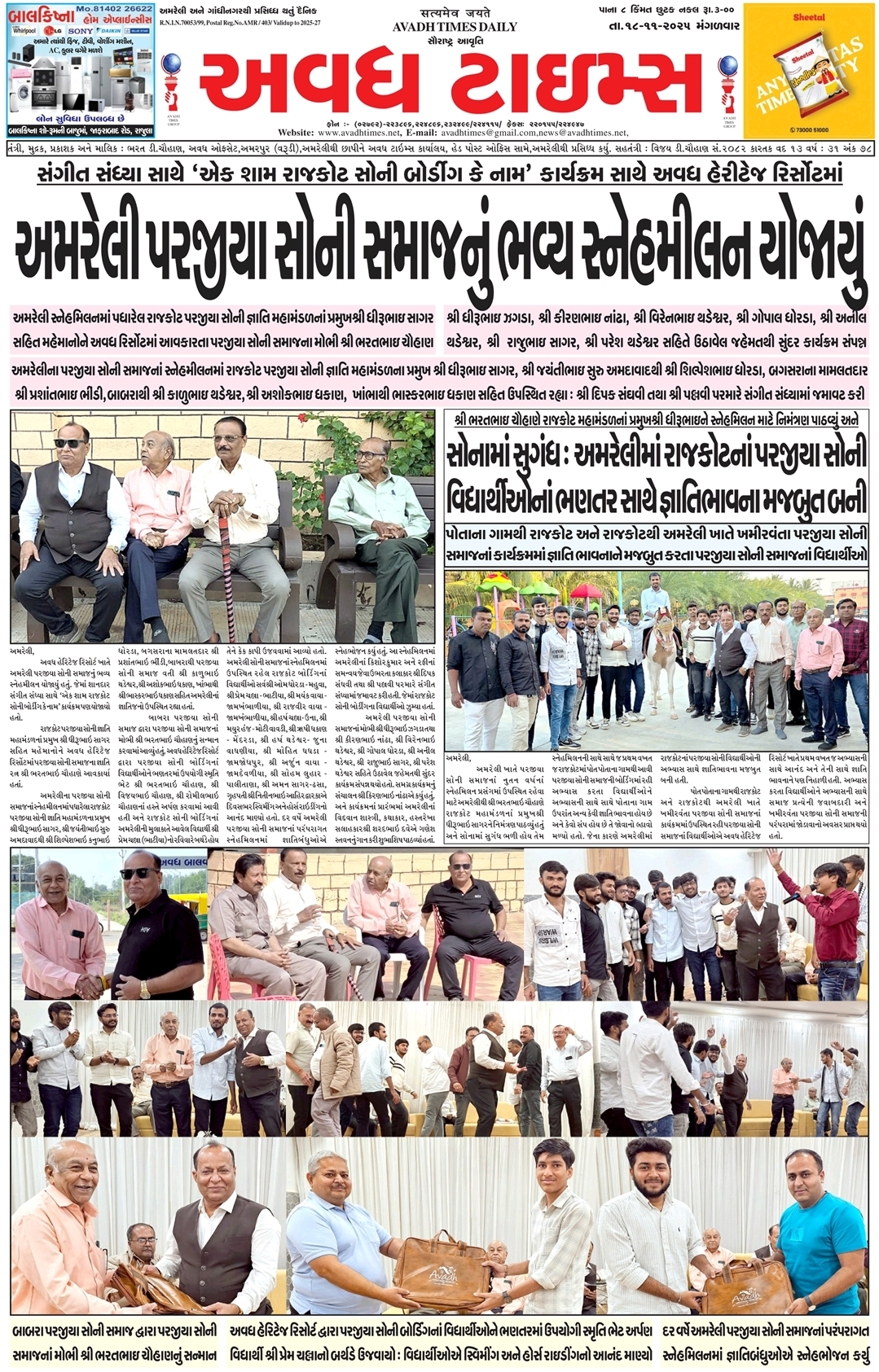 અમરેલી સમાજ ન અગ્રણી શ્રી ભરતભાઈ ચૌહાણ તેમજ જ્ઞાતિજનો દ્વારા અમરેલી જિલ્લા ના વતની અને અખબાર જગત ના અગ્રણી શ્રી જીતુભાઈ સોની નું વતન ની મુલાકાત દરમ્યાન હાર્દિક સ્વાગત કરવામાં આવ્યું.